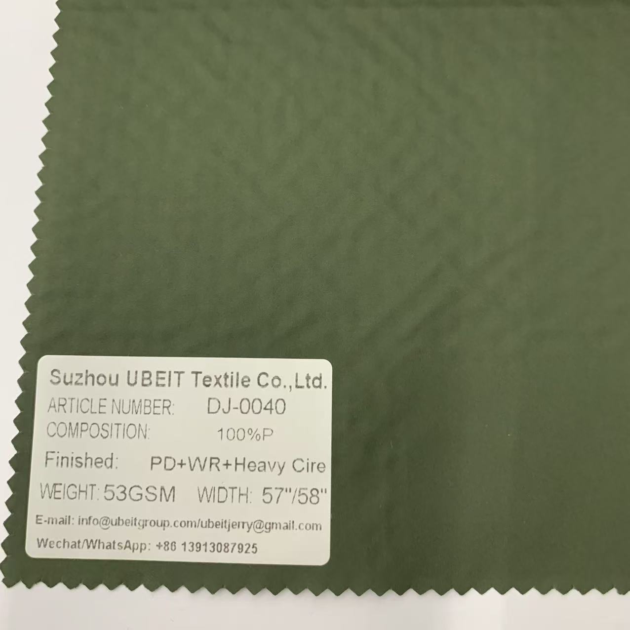 DJ-0040 100%P PD+WR+Heavy Cire Fabric